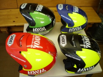 ![]() *写真をクリックすると拡大写真にリンクします | 塗処(ぬるところ) 尾山様より ヘルメットが 届きました! いつもながら Verry Good !! 今回は サンプル的に色違いを 何点か作っていただきました! *マインダー ・ 若手のサポートライダーが使用する予定です |